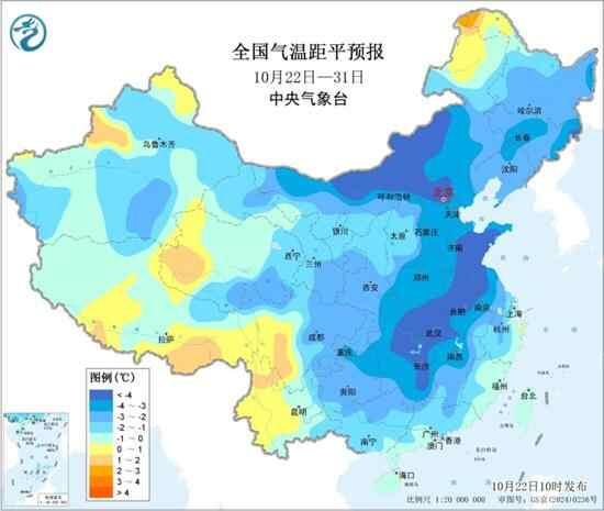 10月上中旬,南方偏暖明显,然而未来10天,全国大部地区平均气温较常年同期偏低1℃至3℃,其中内蒙古中部、华北北部、黄淮东部、江汉、江南西部等地的部分地区偏低4℃至5℃。10月气温距平实况图和预报图对比,南方色调尤其不同。