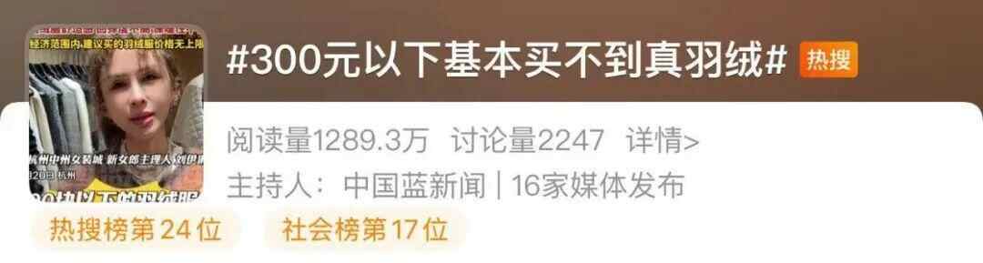 近日,“300元以下基本买不到真羽绒服”的话题冲上热搜,引发热议。