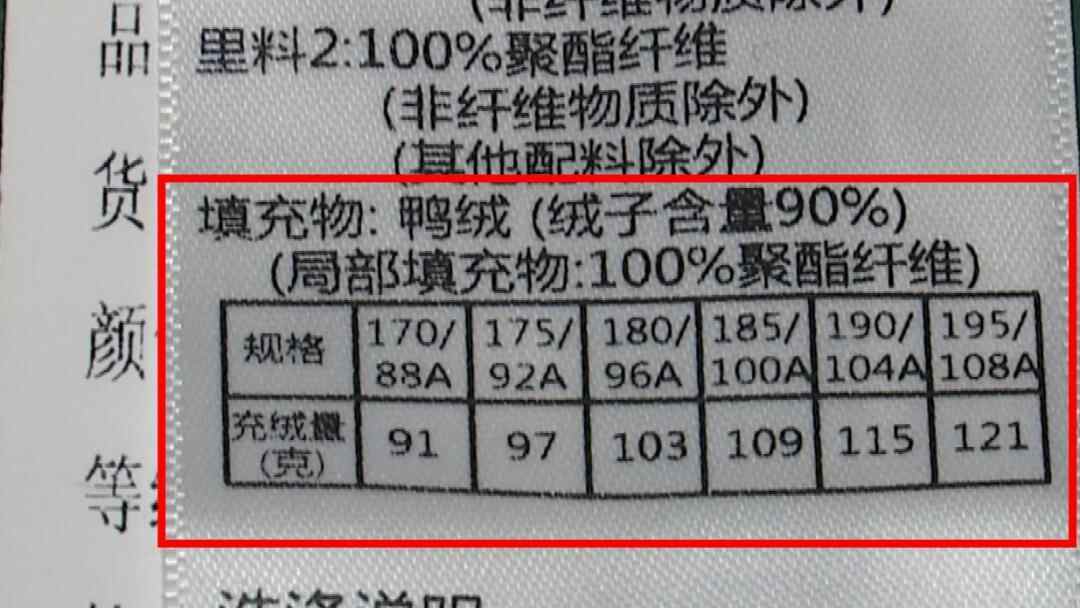 3.看充绒量(克数):这是决定保暖程度的关键!同样90%绒子含量,100克充绒量与200克充绒量保暖性差异巨大。需结合所在地区冬季温度选择。