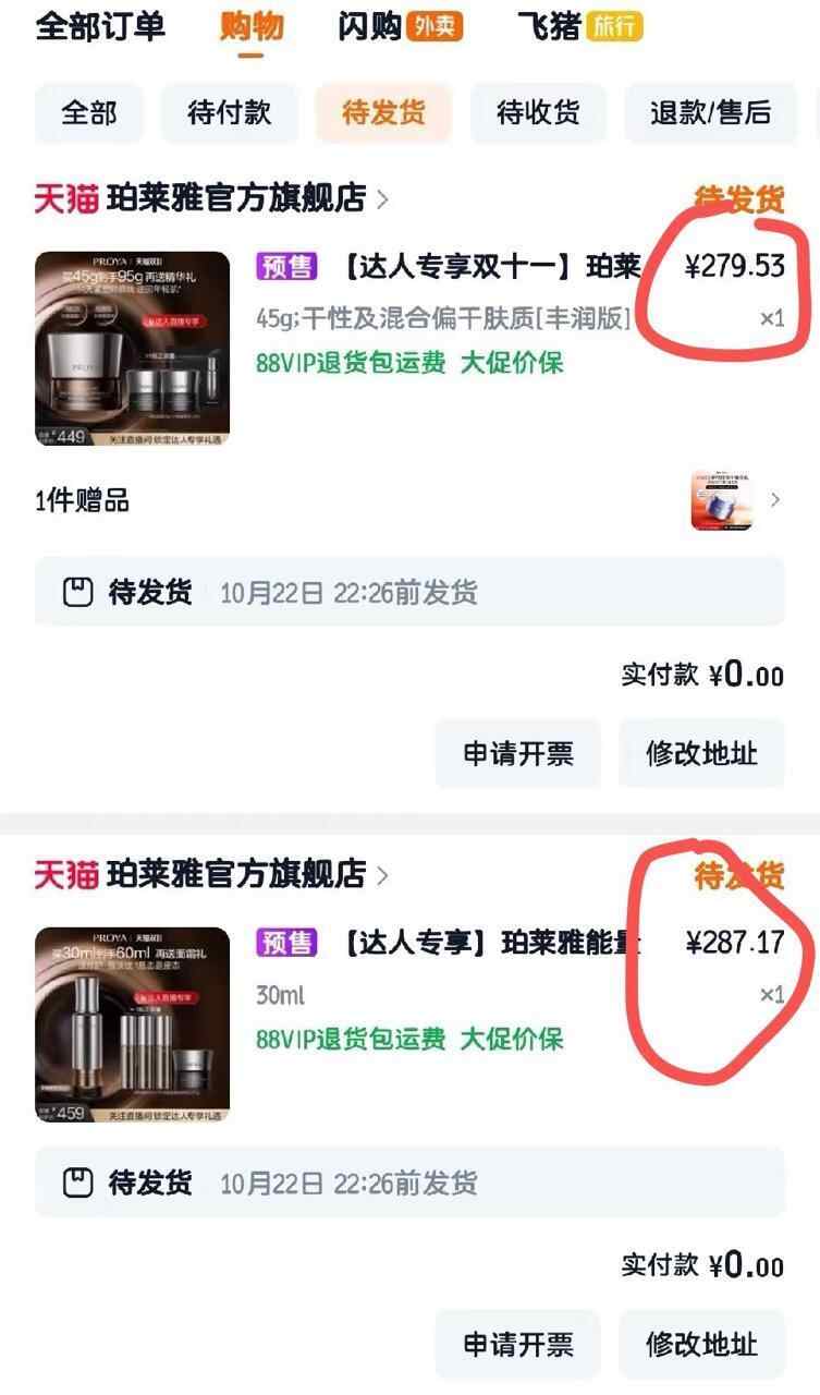 但消费者购买的达人专享预售款,精华价格为279.53元,精华价格为287.17元。