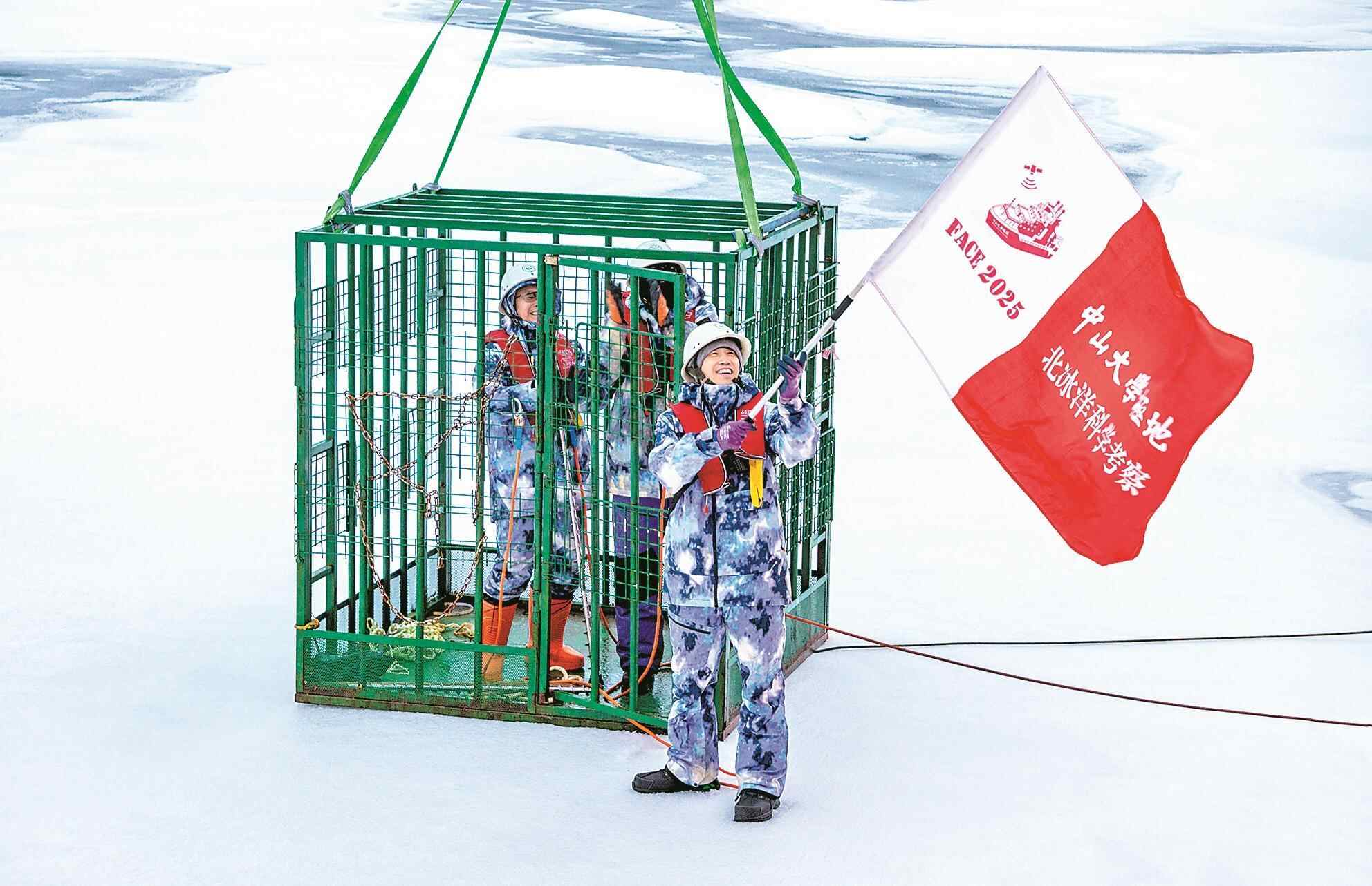 技术创新之“破冰”不止于此。又如,一直以来,无人潜水器在极地冰区的收放都是个难题,漂浮的海冰会严重干扰设备的上浮。中大海洋工程与技术学院李晓天副教授注意到,破冰船在航行时,船艉区域会因尾流自然形成一个无冰区。科考队员因而创新性地设计了一个可拆卸折叠的“外挂式”月池,利用尾流产生的无冰区将其安装在船艉,进而在关闭船艉螺旋桨开展无人潜水器作业时,便可利用该“外挂式”月池阻挡浮冰进入设备内部,为无人潜水器的布放与回收提供一个无冰的清水区。月池上还装有声学和光学的定位导引装置,以实现潜水器在月池内部的精准回收,此精度相当于高空跳伞运动员精准地降落在一个直径约4米的靶子上。“外挂式”月池的成功实践,给各类水下设备在极地冰区的布放与回收提供了更为便捷经济的新方案。