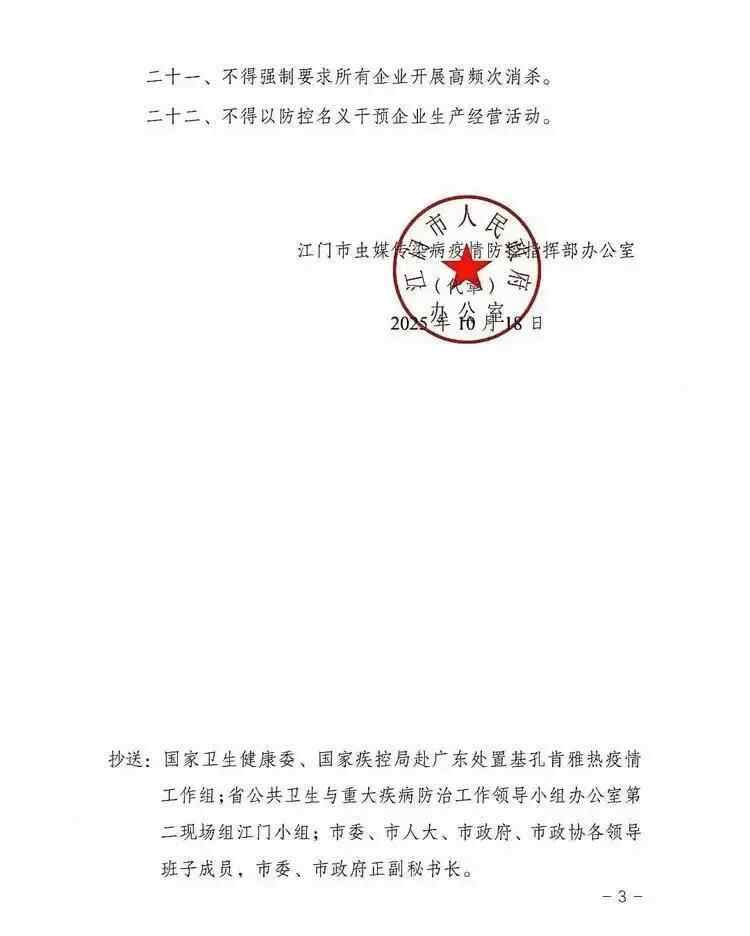 这份内部规范的出台,恰逢江门疫情防控显现积极态势的关键节点。据“健康江门”公众号通报,10月19日全市新增基孔肯雅热确诊病例59例,为9月20日启动突发公共卫生事件三级应急响应以来的单日最低值,首次降至60例以下。参照佛山抗疫经验,若连续9天日新增低于50例,即可判定进入低水平散发状态,照此推算,江门有望在10月30日前后达成这一阶段性目标。
