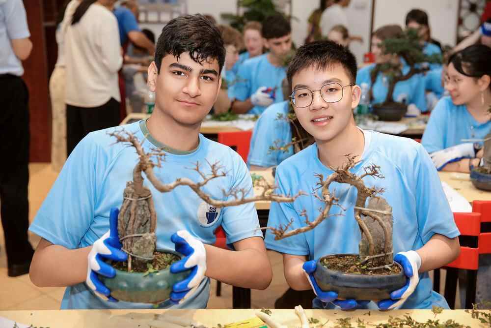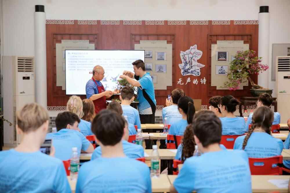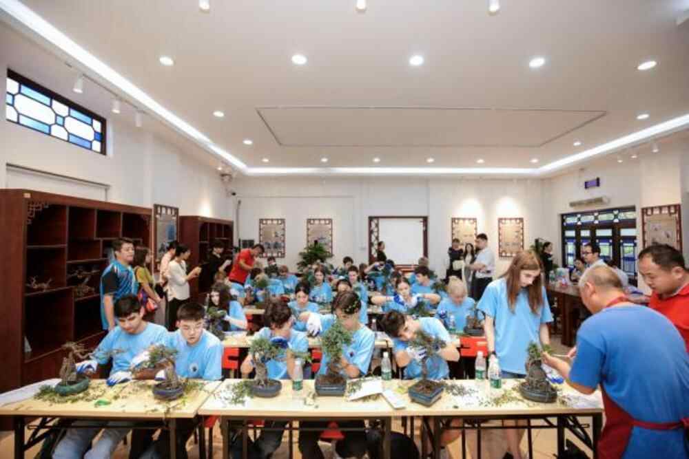 体验环节中,在岭南盆景大师刘光明与公园盆景技术人员的指导下,德国师生亲手尝试盆景制作。他们在枝叶的修剪与造型过程中,体会中国传统园艺所蕴含的匠心与哲学,并最终获得“小小盆景师”毕业证书。