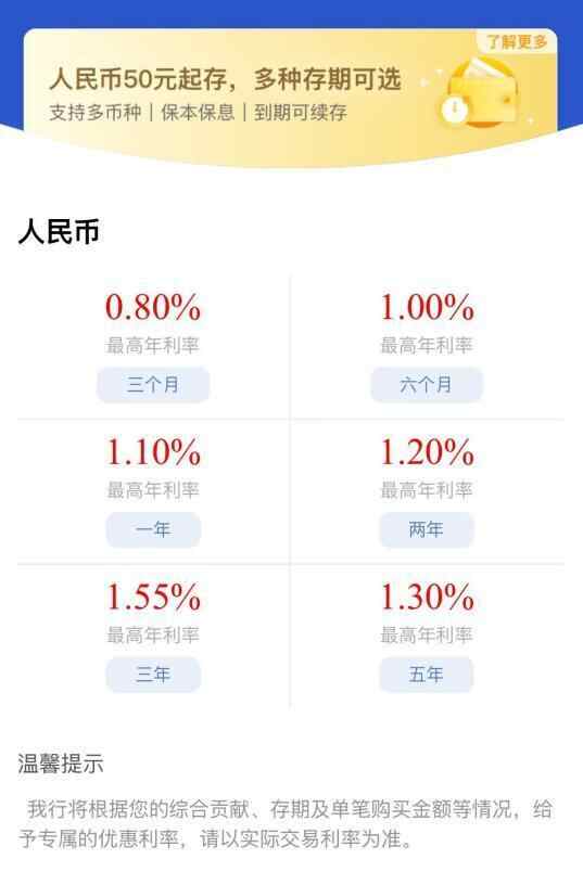 例如,建设银行App显示,该行三年期存款产品利率最高为1.55%,五年期存款产品利率最高为1.3%。
