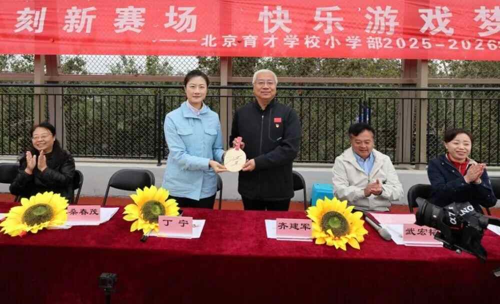 10月17日,丁宁参加北京育才学校以“阳光一刻新赛场,快乐游戏梦起航”为主题的体育节活动。