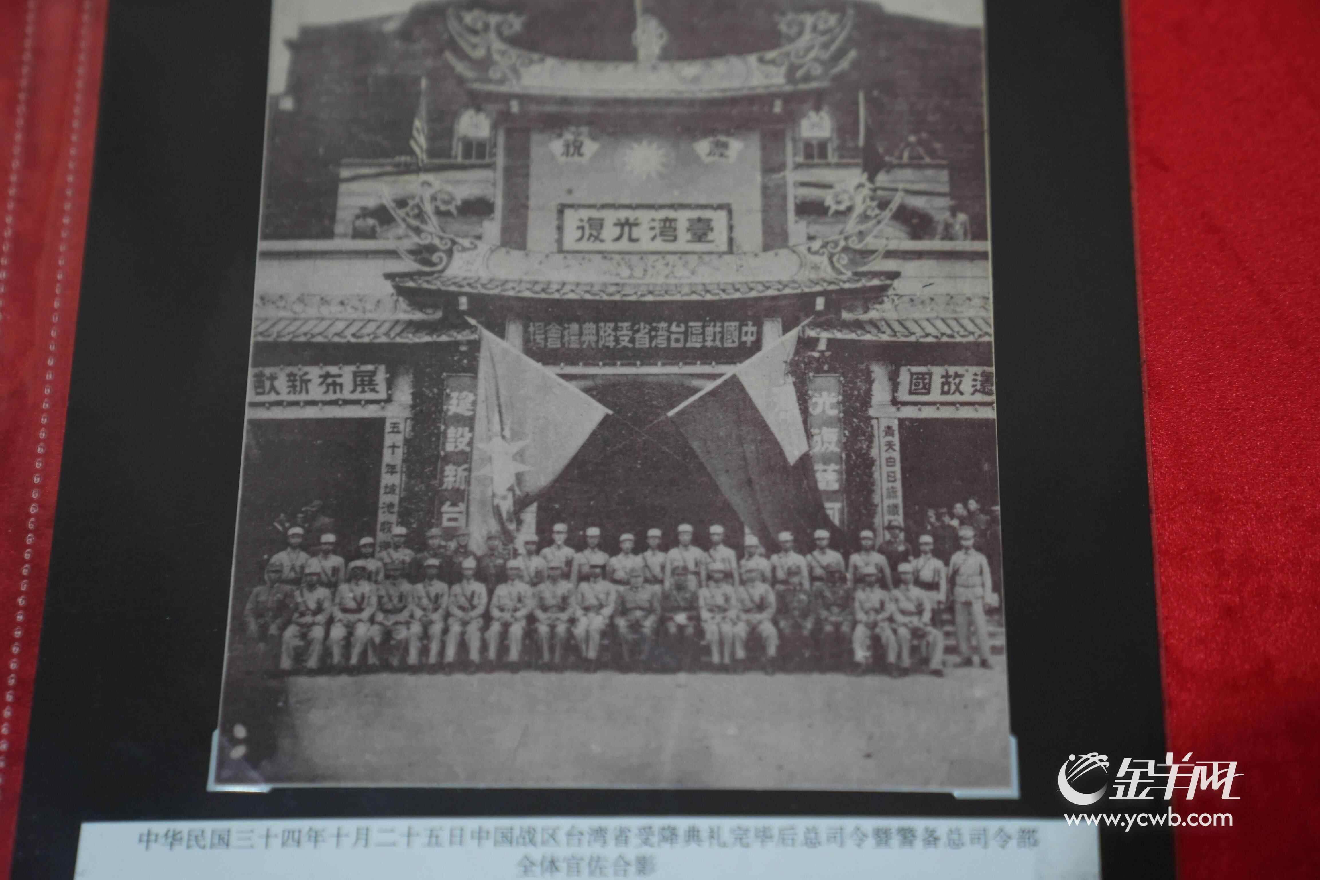 这一历史场景,凝固在广东省档案馆52件台湾光复档案中。“这批馆藏档案共52件,包括照片、图表、文书等多种形式,真实而生动地再现了台湾受降前准备、受降典礼、军事接收、遣返日俘日侨等一系列重要的历史场景,见证了台湾重归中国版图的重大历史时刻。”广东省档案馆接收保管部副主任刘雅琦说道。