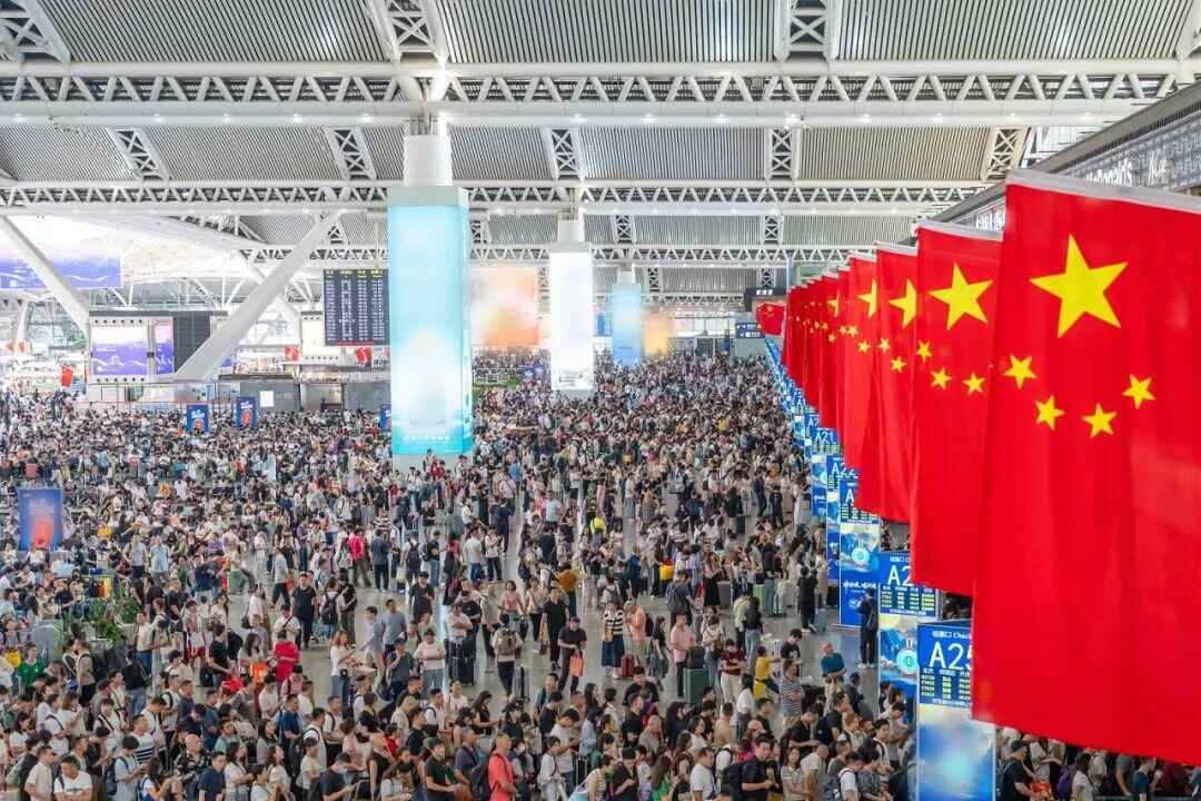 10月1日当天,车站开行列车达1155列,高峰期平均每50秒接发一趟列车,甚至出现17趟列车同时在屏幕上显示检票的壮观场景。