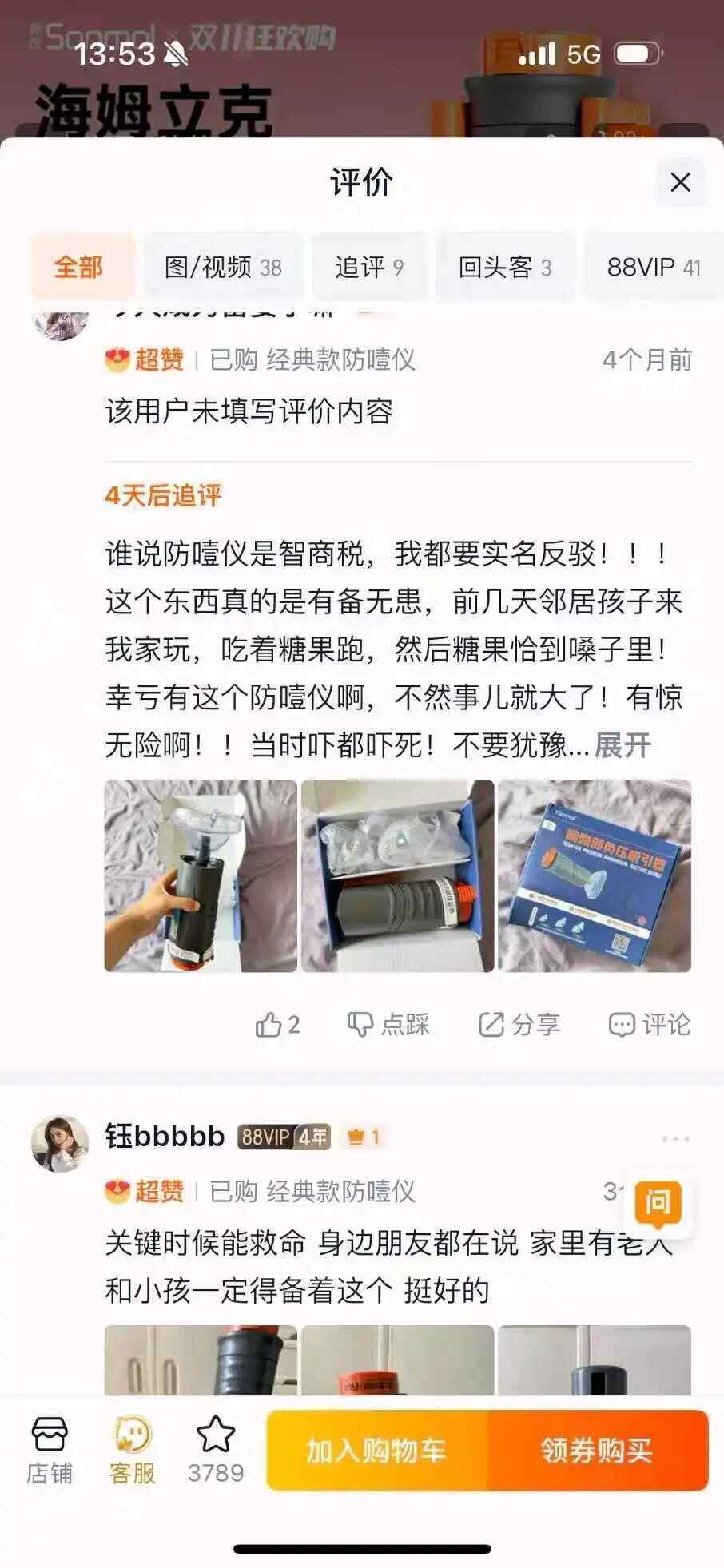 用户评价呈现两极化,有买家表示“很有用”,“前几天邻居家孩子来玩,吃着糖果跑,然后糖果卡在嗓子里,幸亏有这个防噎仪,不然事就大了”,也有买家称这是“智商税”,“我老公姐姐家的孩子用了,卡了个瓜子壳,根本吸不出来,还好离医院近。”