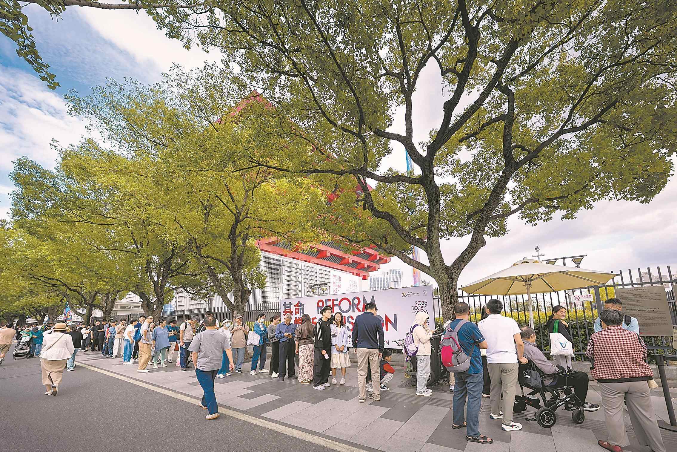 10月19日一早,上海美术馆(中华艺术宫)外排起长队,不少市民等候入场,参观“其命惟新——广东美术百年大展”。该展览于18日启幕,在沪引发广泛关注。