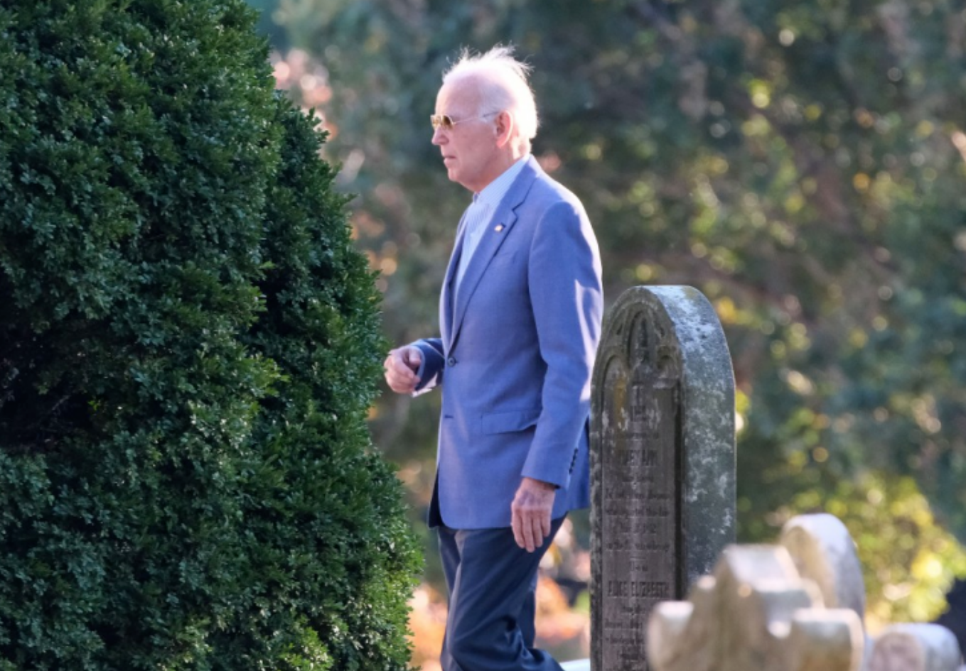 报道称,拜登当日到他常去的教堂参加晚间弥撒,其妻子吉尔·拜登没有陪他一同前往。活动结束后,拜登被拍到扶着一名女士缓慢行走,他身穿深色西装,右眼上方因接受皮肤癌手术而留下的大块疤痕依然清晰可见。