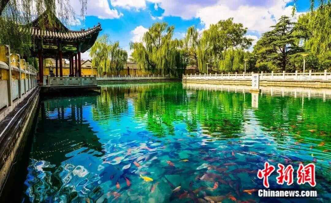 10月14日,济南趵突泉实时地下水位达30.29米,创近60年来最高水位纪录。中新社记者 赵晓 摄