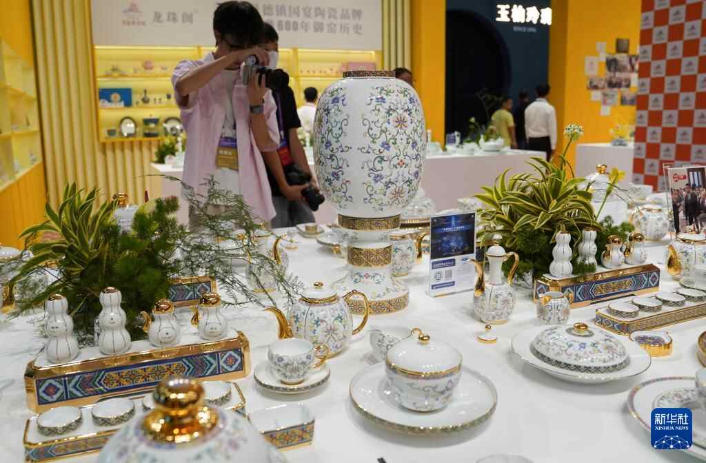 这是陶瓷博览会展区展出的餐具(10月18日摄)。