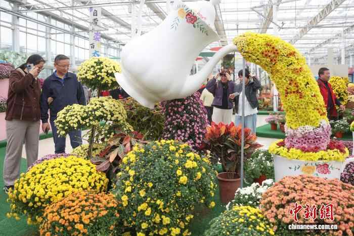 10月26日,南京农业大学湖熟菊花基地内,市民欣赏花型、花色各异的菊花。中新社记者 泱波 摄