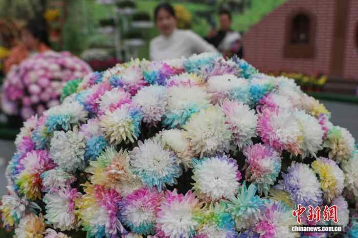 10月26日,南京农业大学湖熟菊花基地内,市民欣赏彩色菊花。中新社记者 泱波 摄