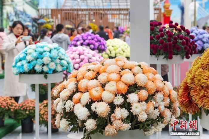 10月26日,南京农业大学湖熟菊花基地内,市民欣赏花型、花色各异的菊花。中新社记者 泱波 摄