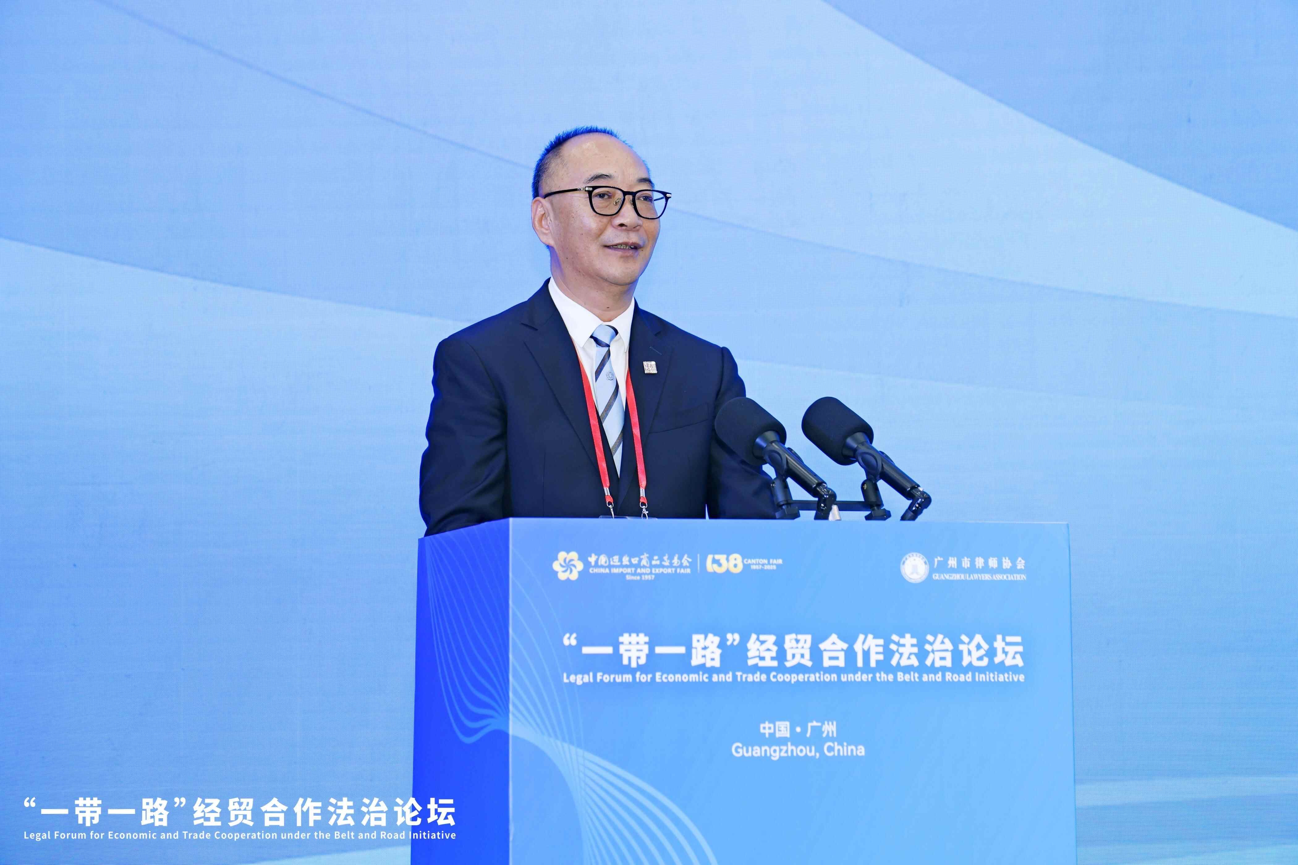 10月26日,“一带一路”经贸合作法治论坛在广州举办。本届论坛聚焦国际经贸结构重塑下的法治保障与制度创新,汇聚来自全国26个省市的律师协会代表、70余家企业代表,以及政府部门、高校智库、海内外嘉宾近300人,深入探讨“展会+法治”融合路径,为法治护航“一带一路”高质量发展贡献广州智慧与法治力量。广州市委政法委主要负责人和中国对外贸易中心相关负责人出席并致辞。