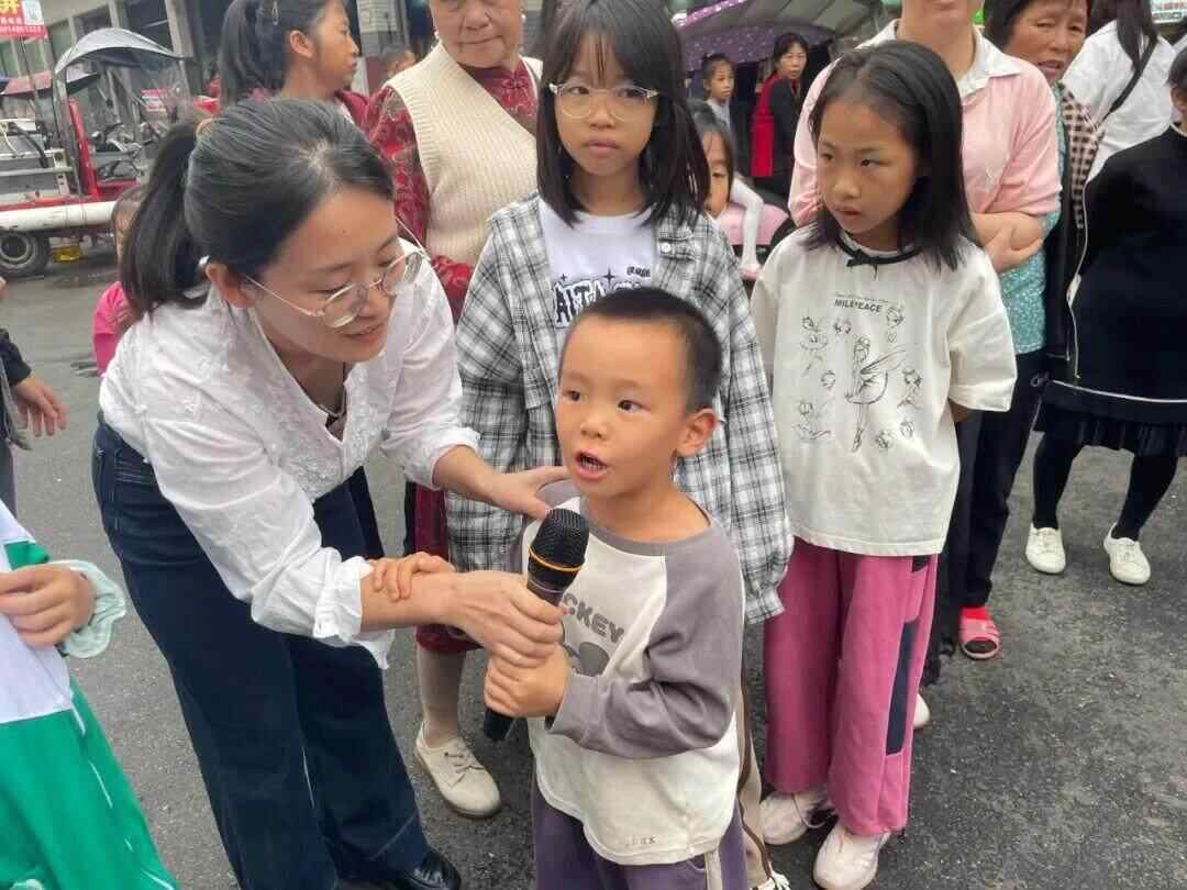 观众互动环节洋溢着纯真的童趣,参与活动和买菜路过的小朋友们都格外积极,一个个举起小手,迫不及待地想要展示。《春晓》《咏鹅》《望庐山瀑布》,一首首熟悉的古诗在菜市场里此起彼伏,稚嫩的童声为这个寻常的空间注入了别样的生机。在最后的诗歌接龙游戏中,故事回到了在1号粮仓上课的那个阴雨绵绵的上午。孩子们你一句我一句,时而凝神思考,时而开怀大笑,仿佛回到了诗歌课堂的日常。