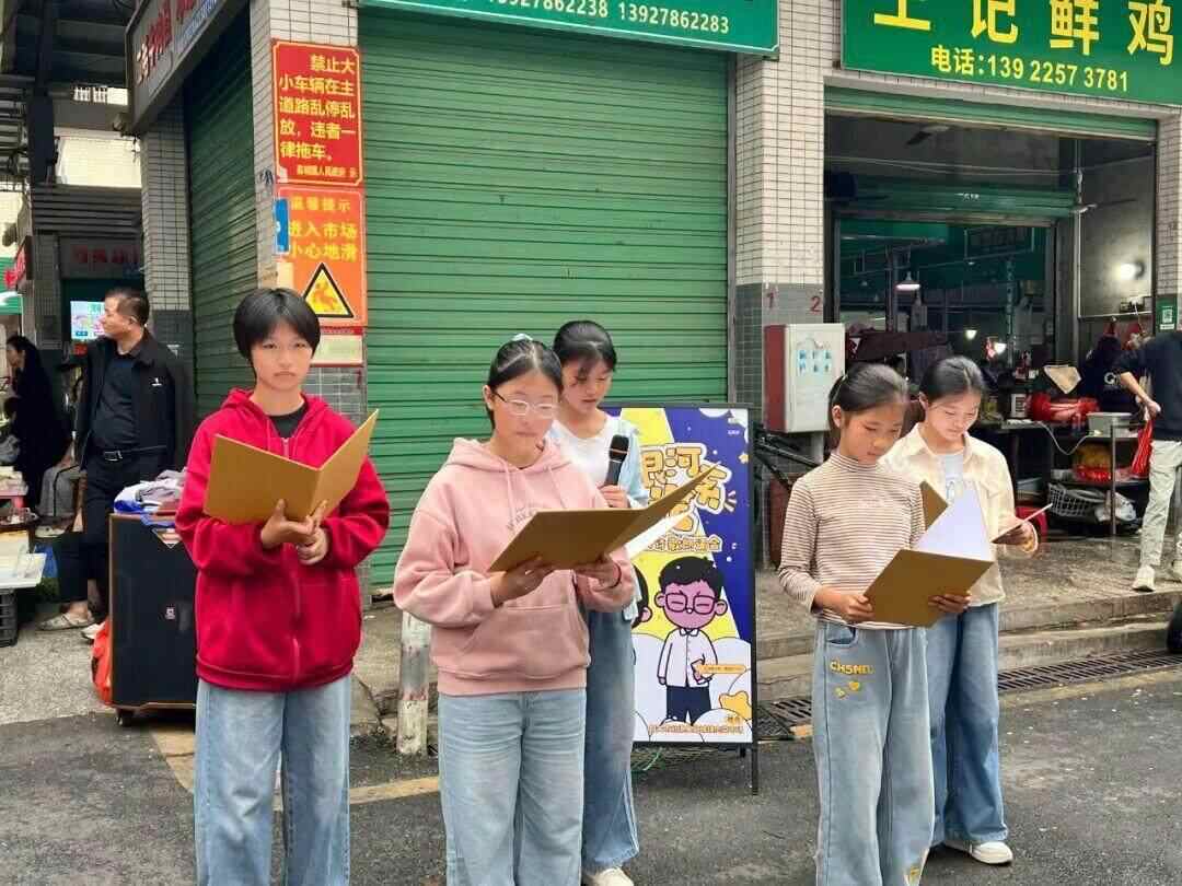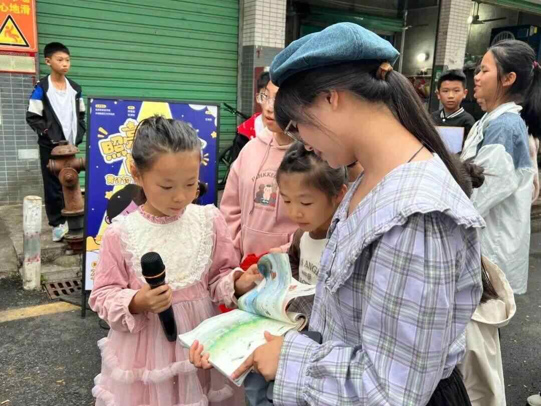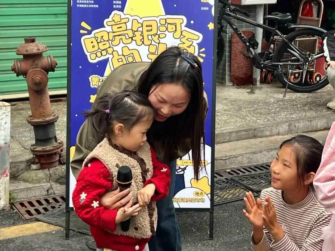 传钧和她写诗的小伙伴们朗诵了《月亮种下的梦》,“这片山,是我的根/而那片海,是我的梦/一个被月亮种下的梦”。培钊和他的同学们则演绎了《远方的“他”》,“我喜欢自由,喜欢奔跑/妈妈说我是脱缰的野马/我属于草原”。孩子们用稚嫩却真诚的声音,将市场变成了一个充满想象力的诗意空间。