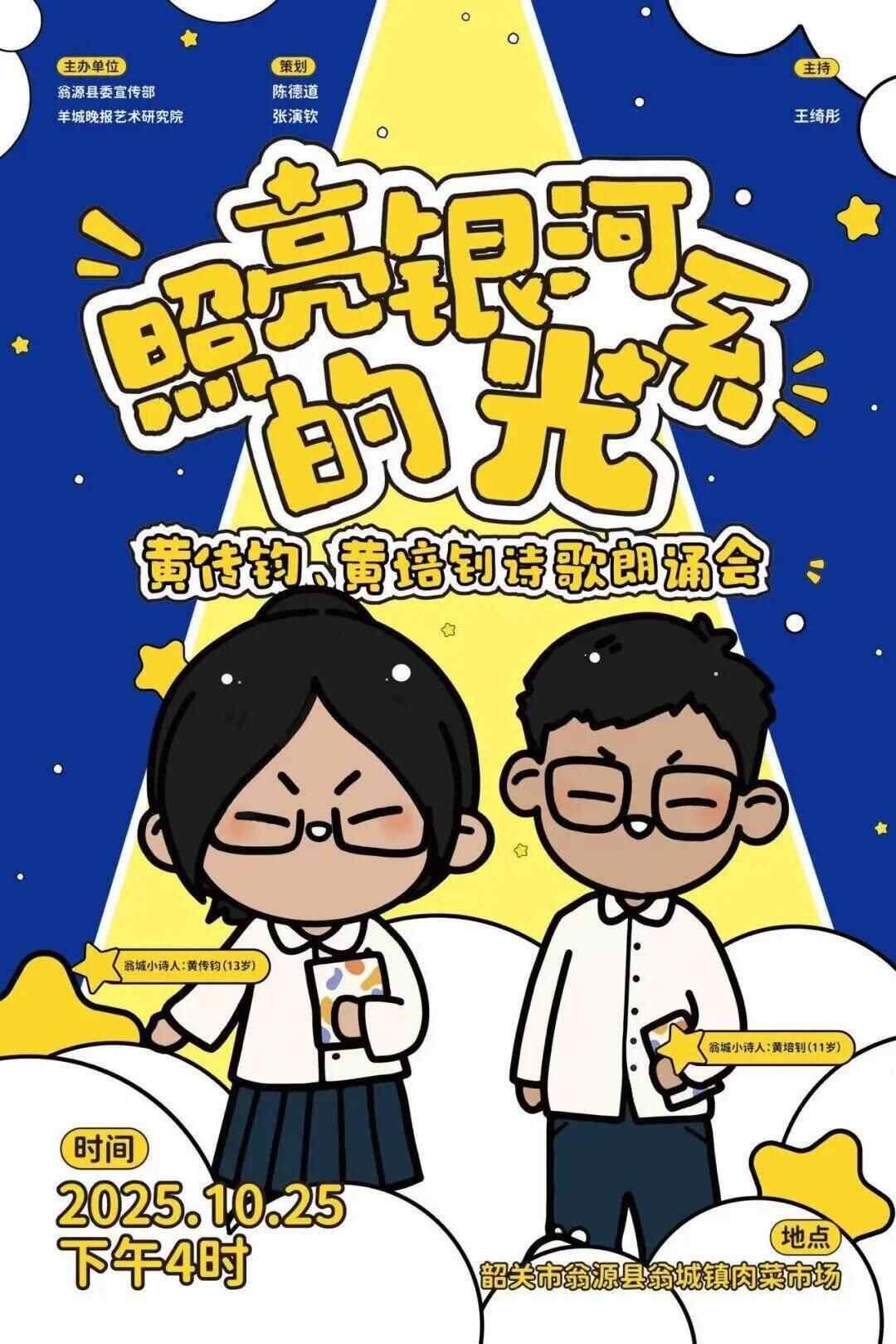 这场诗会的两位小诗人——黄传钧、黄培钊姐弟是翁城小诗人的优秀代表。他们到过广州塔、广州白鹅潭、广州中山纪念堂等地方进行演出。姐姐黄传钧曾去北大交流,诗歌作品登陆过央视“六一”晚会。