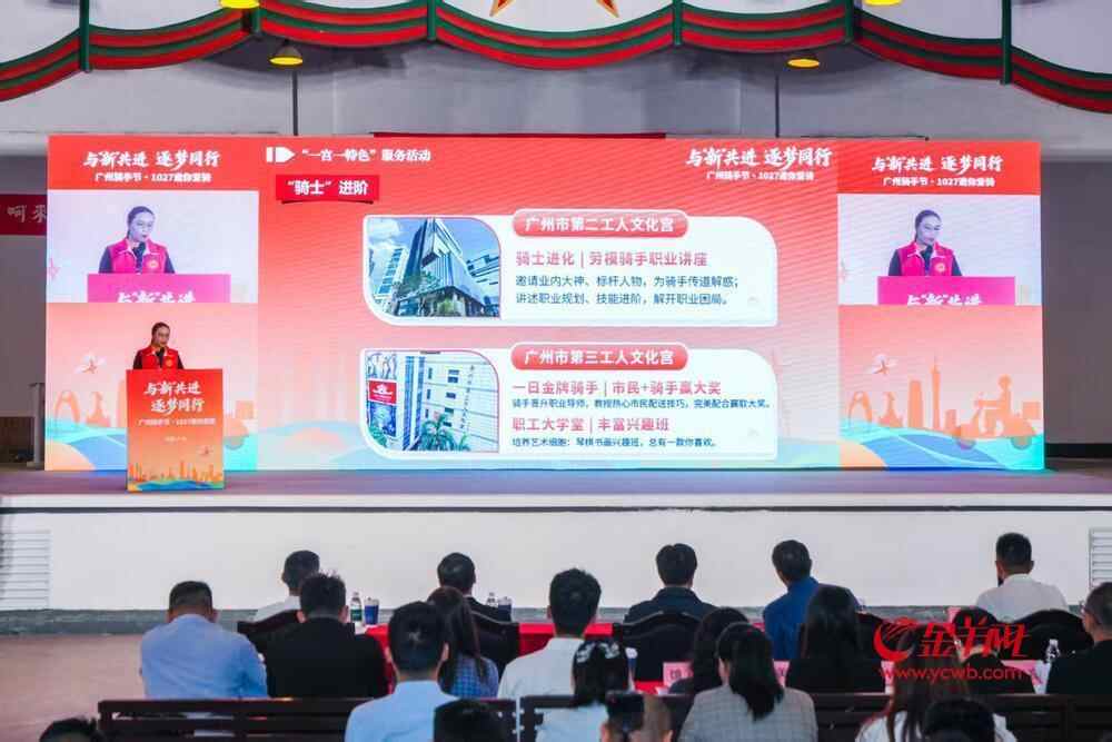 “1027”,音译“邀你爱骑”。本届“骑手节”紧扣“与‘新’共进,逐梦同行”主题,主要展现广州市网约配送行业工会联合会与“新业态”同行,与外卖配送行业共同发展的崭新进程。活动现场,主办方正式发布六条“爱骑”举措,让服务精准触达每位骑手: