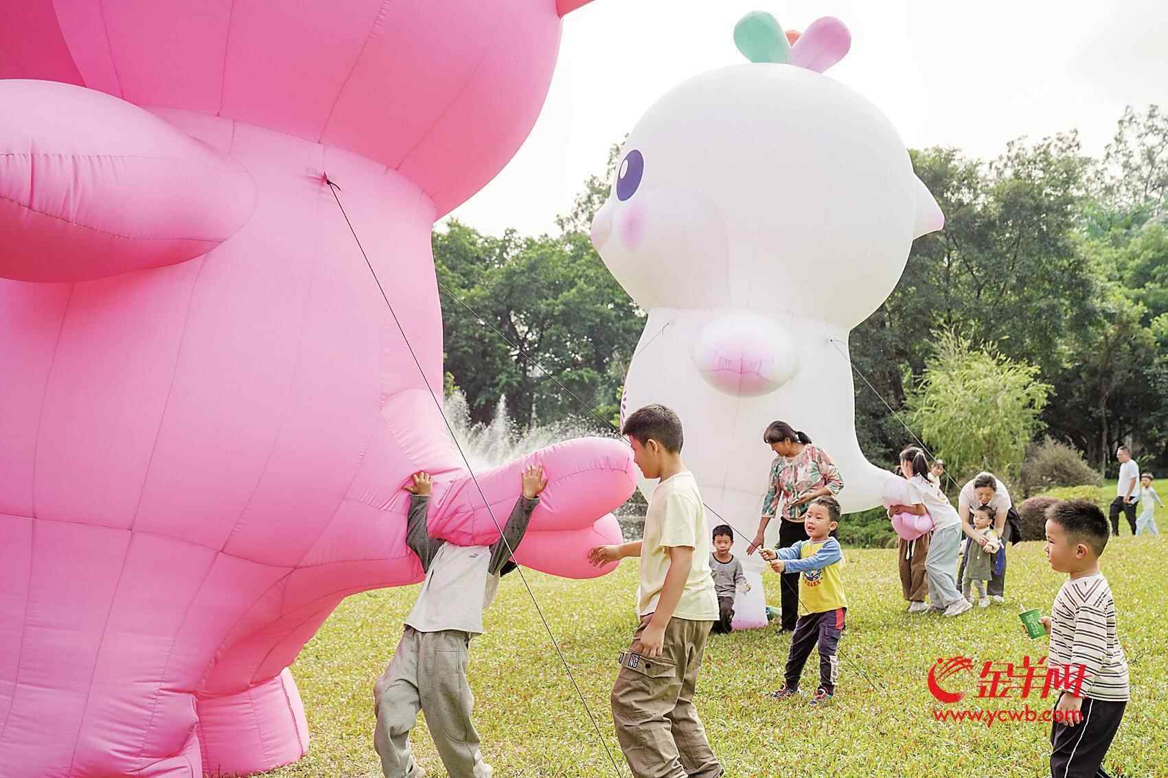 10月25日下午,广州麓湖公园聚芳园的草地上,两只巨型的十五运会吉祥物“喜洋洋”“乐融融”,收获了大小朋友们的喜爱。
