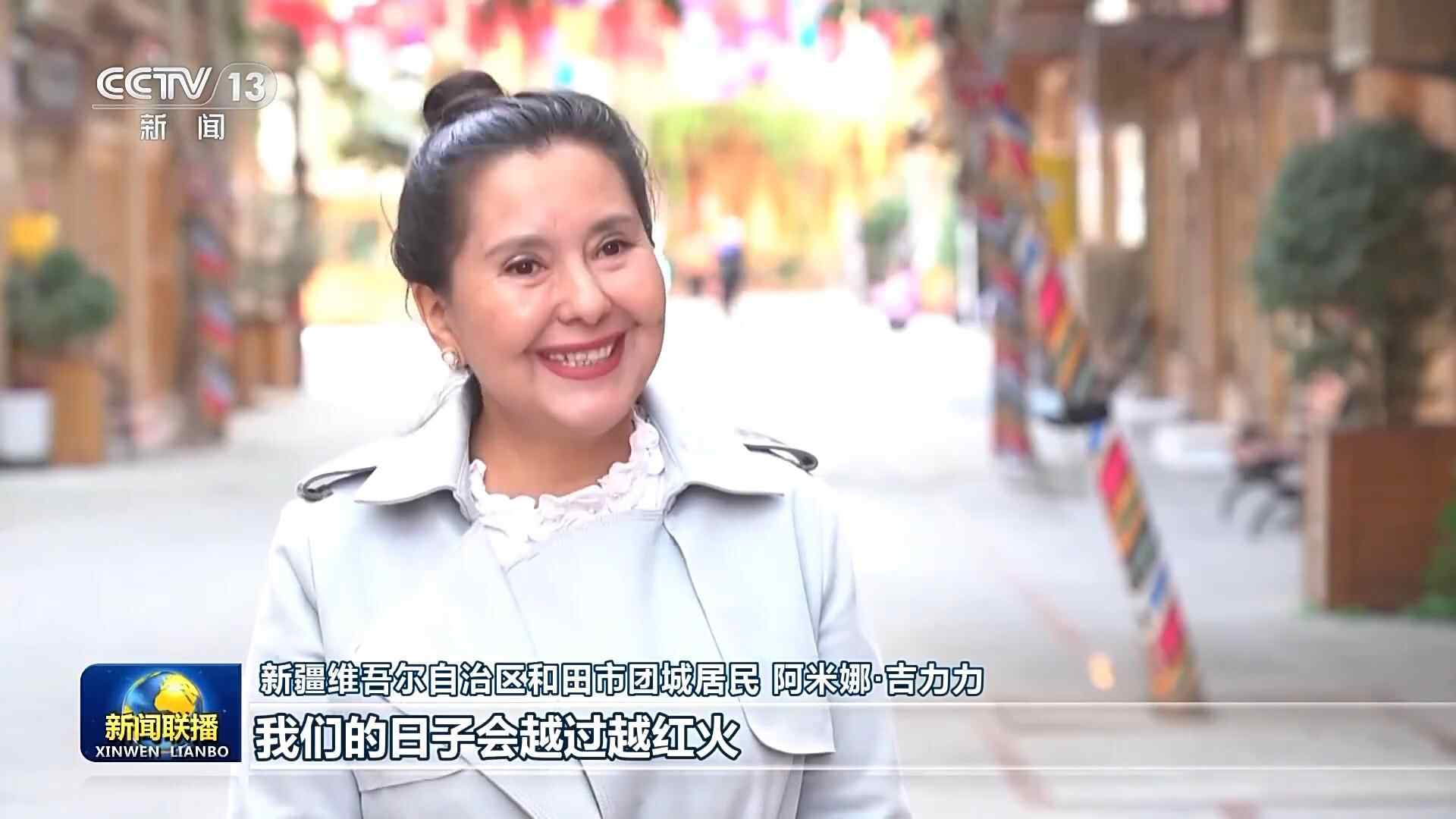 新疆维吾尔自治区和田市团城居民 阿米娜·吉力力:各族群众深深感受到了总书记的亲切关怀。过去的五年,通过改造升级,这里旅游产业蒸蒸日上,大家都享受到了旅游带来的红利,全会提出加大保障和改善民生力度,让我们充满了信心,我们的日子会越过越红火。