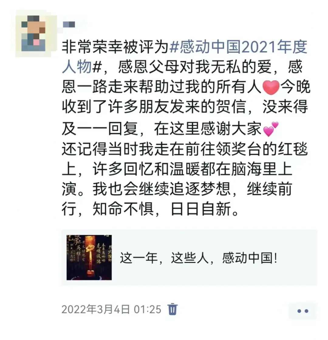 读博期间,江梦南被评为“感动中国2021年度人物”。