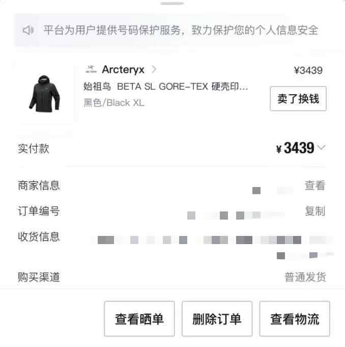 “两个袋子里的衣服买的时候花了15000多元。”王东告诉记者,袋子有1件始祖鸟冲锋衣2024年8月购买价格3439元,1条始祖鸟冲锋裤2024年8月购买价格2199元,还有一些价格60元到700元不等的衣物。根据王东向记者出示的购买截图显示,始祖鸟冲锋衣及冲锋裤的价格确实分别为3439元、2199元。