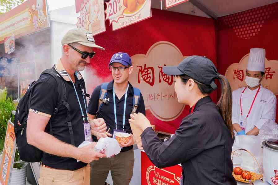 文化,在广交会成为沟通世界的另一座桥梁。D区贵宾俱乐部内,千年古乐悠扬回荡,境外采购商在非遗文化展演中沉浸于中华传统音乐的魅力;A区中庭花园,“食在广州·品味全运”音乐美食节香气四溢,粤菜大师巧手演绎,老字号品牌集中亮相,以美食为媒,架起情感交流的彩虹桥。