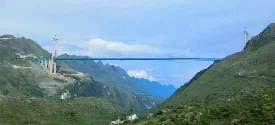 花江峡谷大桥全长2890米,主桥跨径1420米,桥面到水面高度625米,是六安高速公路的关键控制性工程,连接贵州省安顺市关岭县和黔西南州贞丰县两岸,因跨越被誉为“地球裂缝”的花江大峡谷而得名。
