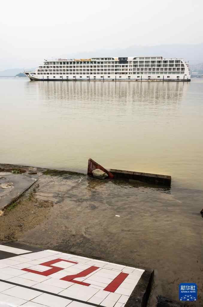 10月24日,船舶从三峡大坝上游湖北省宜昌市太平溪水文标尺前开过。