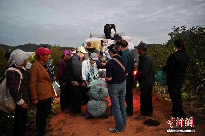 10月24日,广东省河源市龙川县穗丰油茶产业种植基地的工人将采摘的油茶果称重。近日,广东省油茶鲜果迎来采摘高峰期,河源市作为广东省油茶核心产区,拥有逾千年油茶种植历史。中新社记者 陈楚红 摄