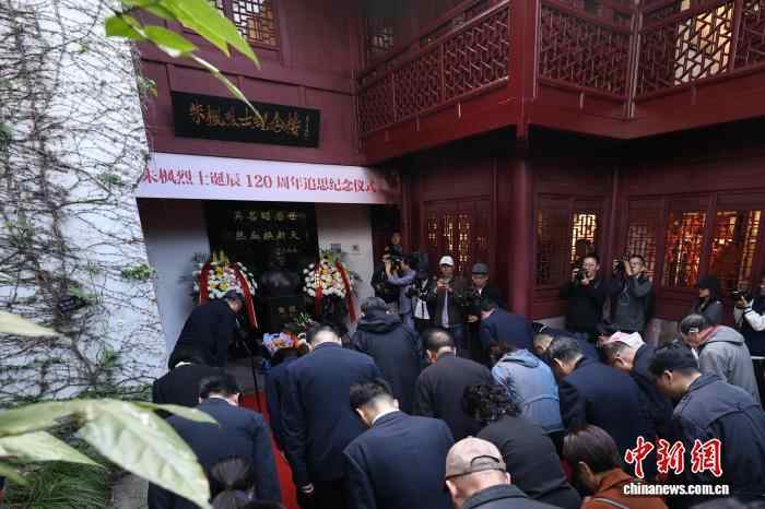 10月23日,在浙江省宁波市镇海区,朱枫、吴石、陈宝仓、聂曦等四位烈士的亲属代表,隐蔽战线先辈罗青长、何遂的后人来到当地,凭吊朱枫陵园,参加朱枫烈士诞辰120周年追思纪念活动。图为活动现场。石承承 摄