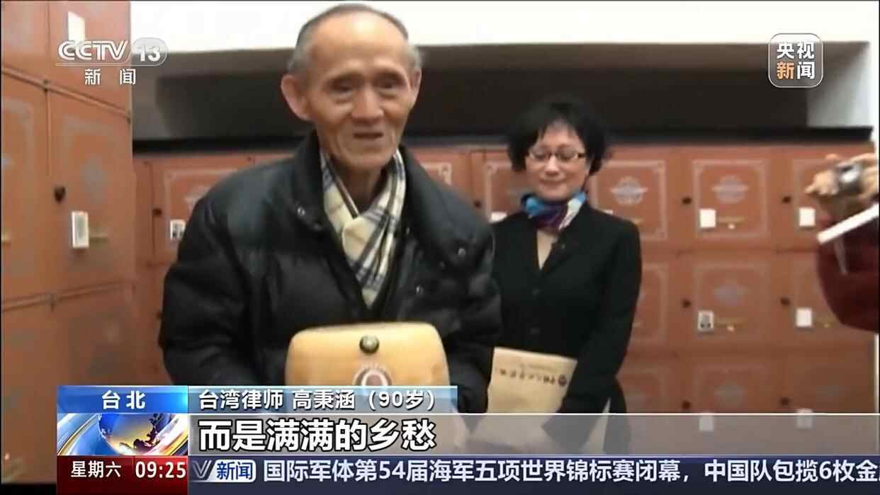 今年已90岁高龄的台湾律师高秉涵已经连续三十多年,帮助台湾老兵把他们的遗骨带回大陆家乡。自20世纪90年代初以来,他已帮助了百余位老兵完成了大家生前未尽的归乡心愿。