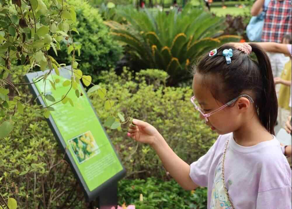 在这些载体中,最具人气的莫过于那些互动式科普设施。“孩子一来就被吸引住了,自己翻、自己看,像玩游戏一样就记住了哪些植物‘能吃能看’。”带着孩子前来游学的李女士,对园内的互动翻页装置赞不绝口。