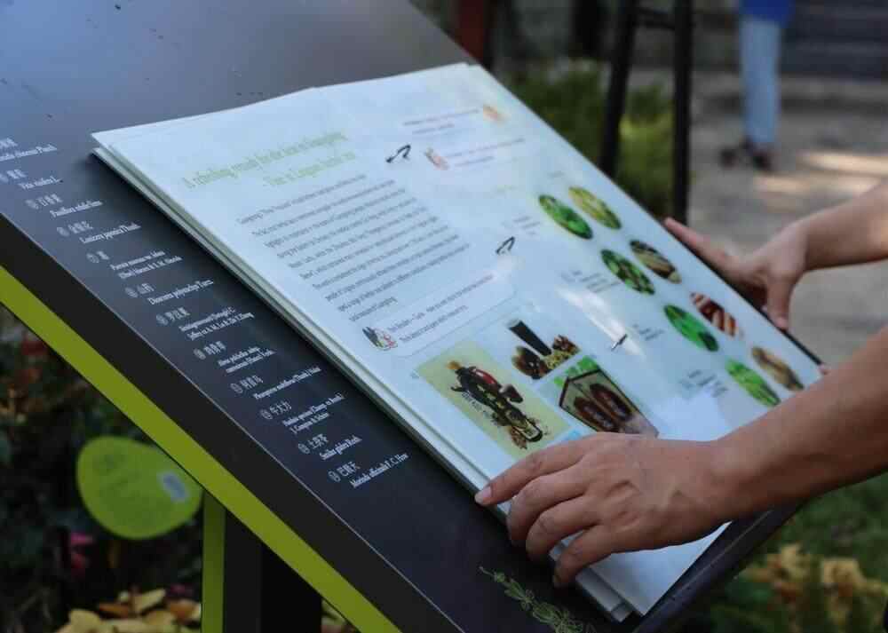 这些被称为“立体小册子”的科普牌,以轻松问答和公园IP“猫宁”“古奈”的萌趣引导,将书本知识转化为“饮食中的藤本”“凉茶中的藤本”等生活化主题。游客随手一翻便恍然大悟:原来常喝的癍痧、王老吉中,竟藏着金银花、葛根等藤本植物的身影。