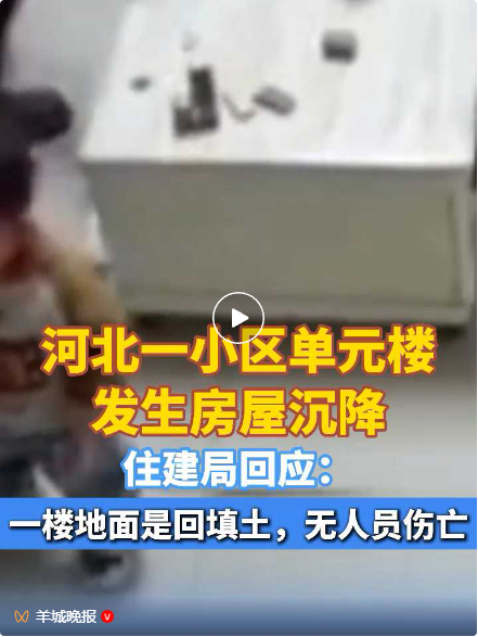 另有网友发布视频称,事发地点为金色阳光小区9号楼,监控显示,房内客厅突然下沉,桌上有物品掉落。