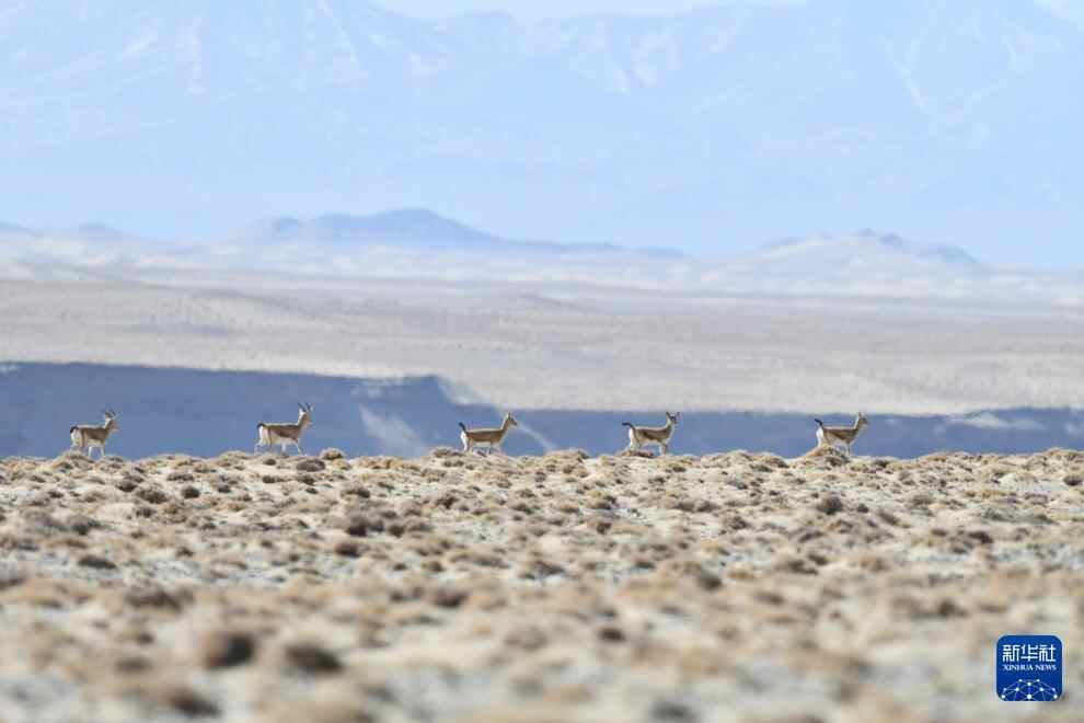 10月21日,一只藏原羚在甘肃省阿克塞哈萨克族自治县阿勒腾乡哈尔腾高原觅食张望。