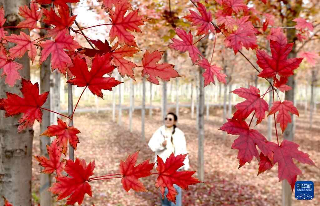 10月22日,游客在河北省邯郸市峰峰矿区义井镇万亩秀林游玩。