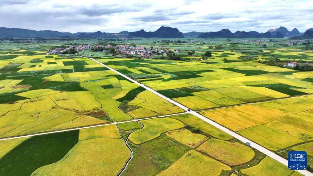 这是10月23日在云南省腾冲市荷花镇羡多村拍摄的稻田(无人机照片)。