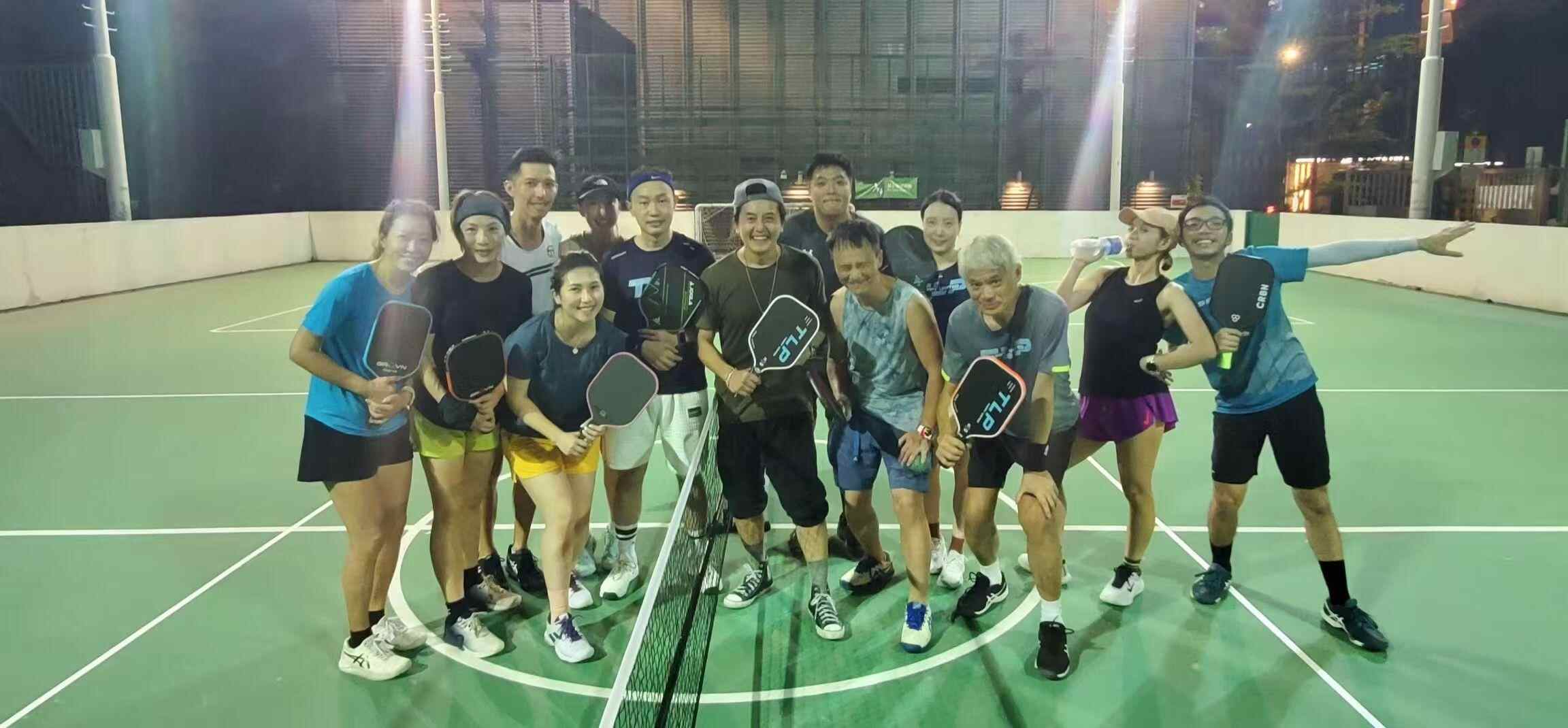 香港的匹克球爱好者们平日里一起练球。