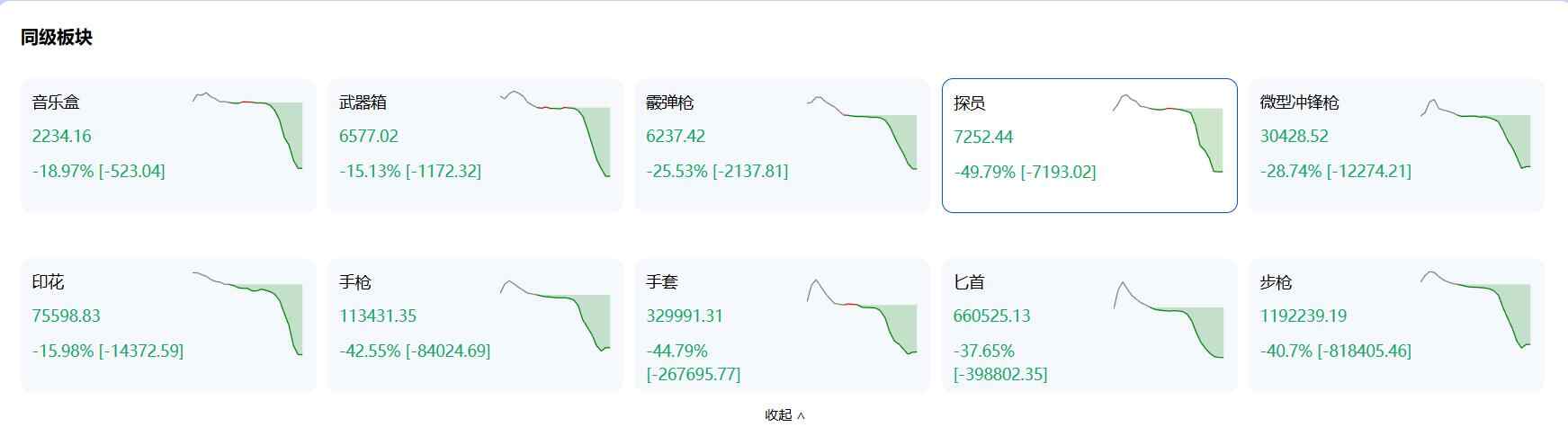 金色饰品的暴跌对整个《CS2》市场产生了巨大影响。由于此前金色饰品稀缺、存量稳定的特点,此类饰品此前长期作为避险板块,吸收了大量市场资金,同时也成为了《CS2》饰品市场的锚定物之一。23日更新后,直接受影响的金色饰品板块风险迅速外溢并形成恐慌踩踏。据steamdt网站数据,10月23日,市场成交额高达4.895亿元,环比暴增504%,各大饰品板块指数均呈不同程度跌幅。