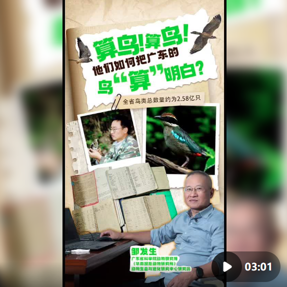 他们为啥要算鸟?怎么算的?南方+记者对话这项研究的作者之一、广东省科学院动物研究所(华南濒危动物研究所)动物生态与进化研究中心研究员邹发生,了解“算鸟”背后的故事。
