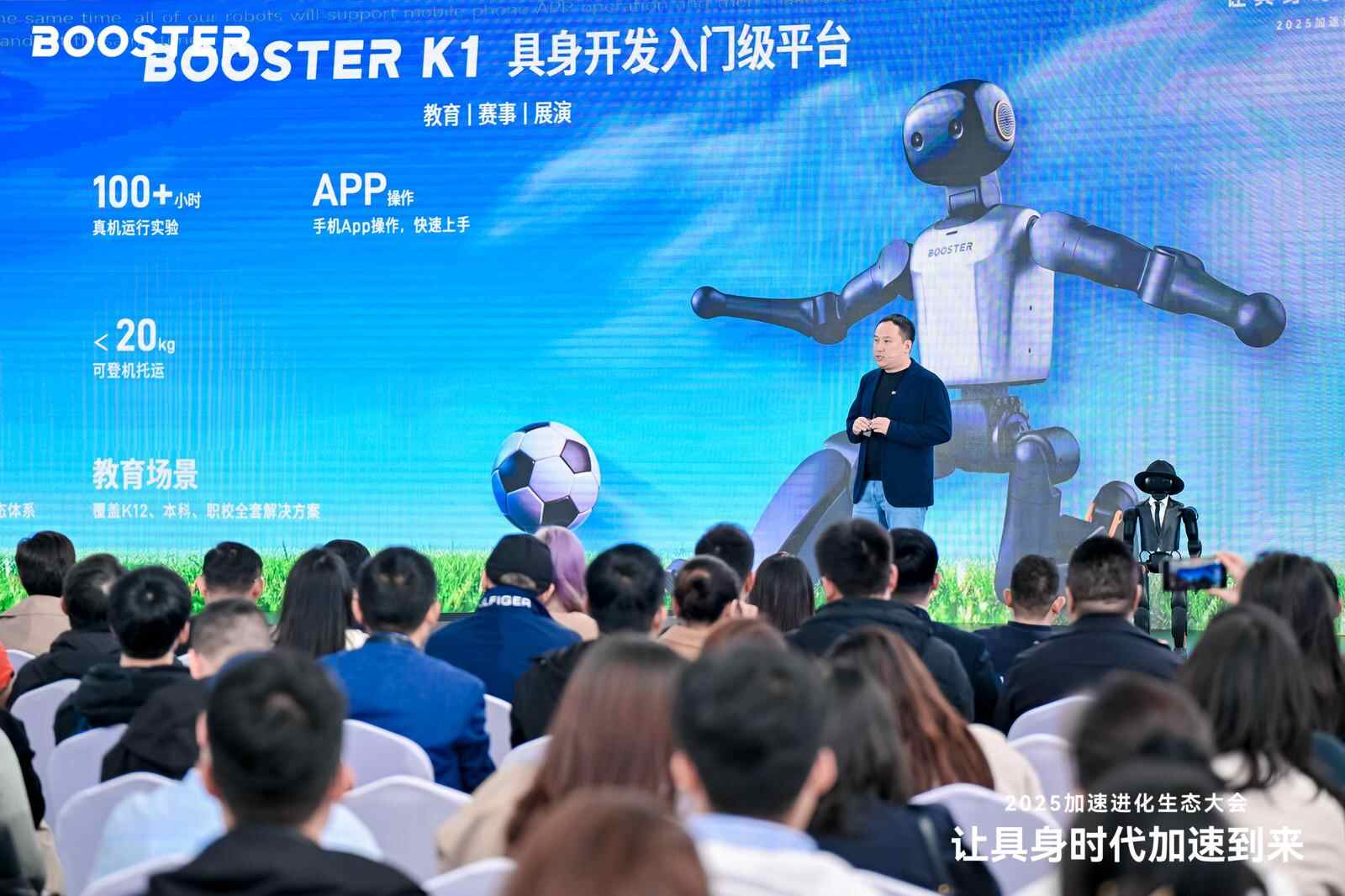 今天是“1024程序员节”,加速进化在北京正式发布了入门级具身智能开发硬件平台——Booster K1,首批100台限时售价2.99万元,于当天22时24分在全球渠道同步发售。与此同时,加速进化启动了面向全国高校的“百城万校”战略计划,旨在深度推动具身智能人才培养与市场开拓。
