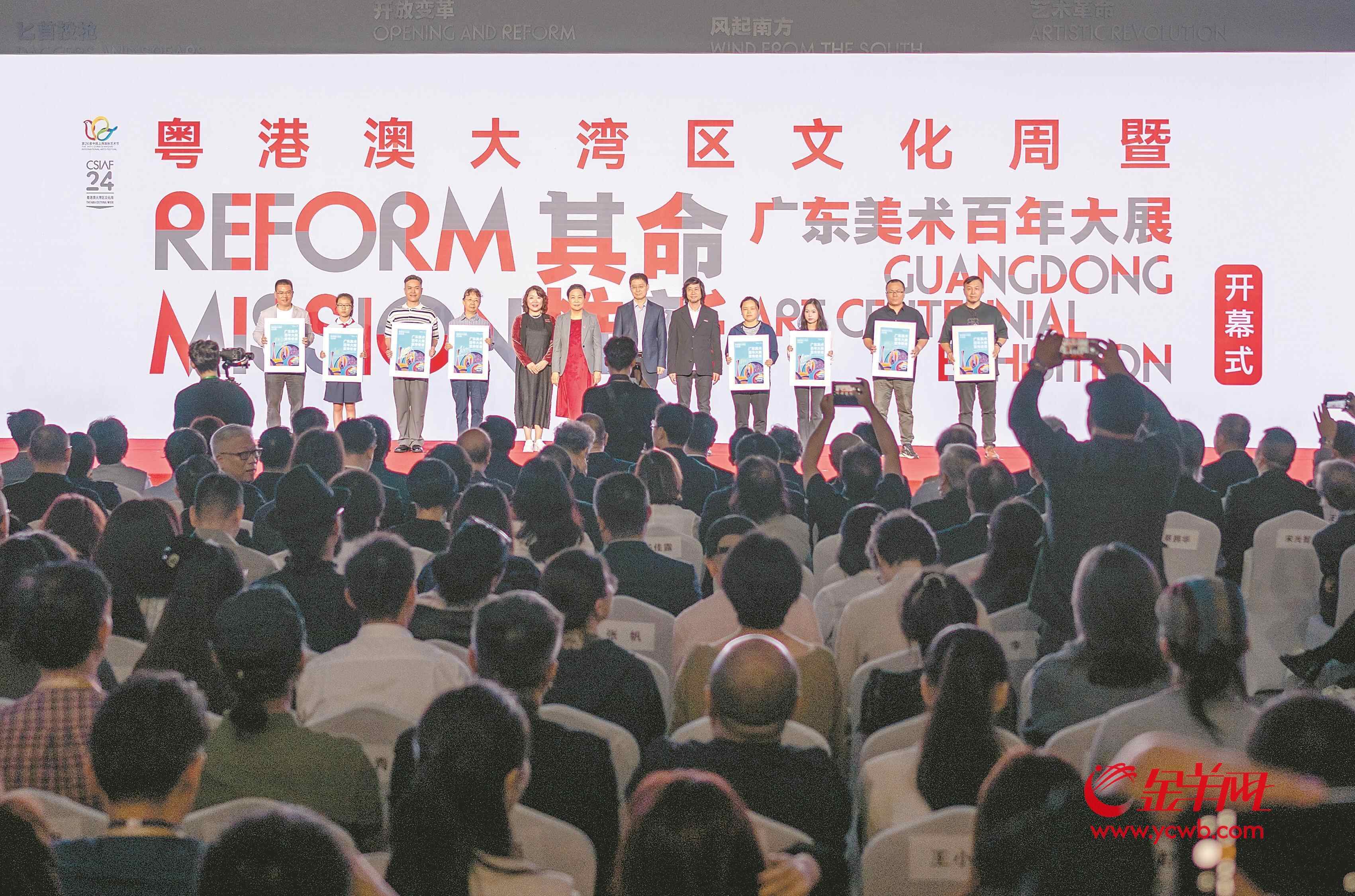 羊城晚报讯 记者朱绍杰、梁善茵、何晶、周欣怡、何文涛、李娇娇报道:10月18日,作为第二十四届中国上海国际艺术节的重要组成部分,粤港澳大湾区文化周暨“其命惟新——广东美术百年大展”开幕式在上海美术馆(中华艺术宫)隆重举行,来自粤港澳三地和上海的各级领导嘉宾、国内知名艺术家及各界代表共同出席见证。