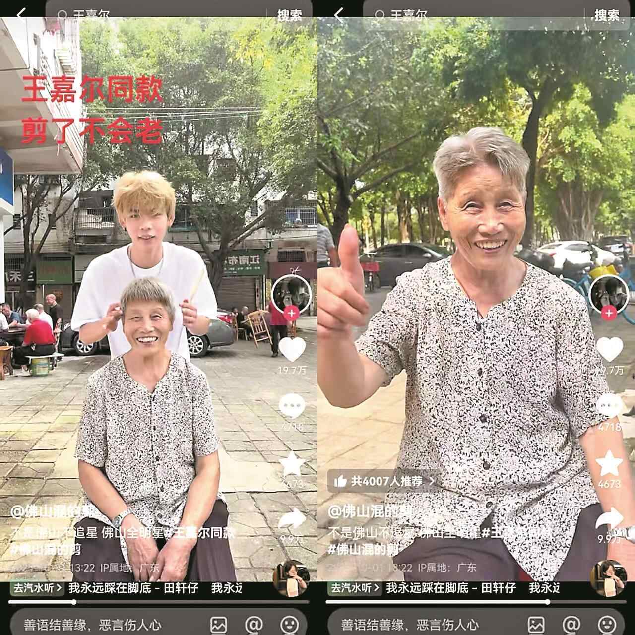 去年8月底,梁金铭第一次把义剪的视频发到网上。“老人爆改王嘉尔”的反差让视频骤火。如今,他的短视频粉丝已超过3.8万,最高一条视频点赞量突破50万,总点赞量超230万。网友戏称:“收手吧,街上全是王嘉尔。”