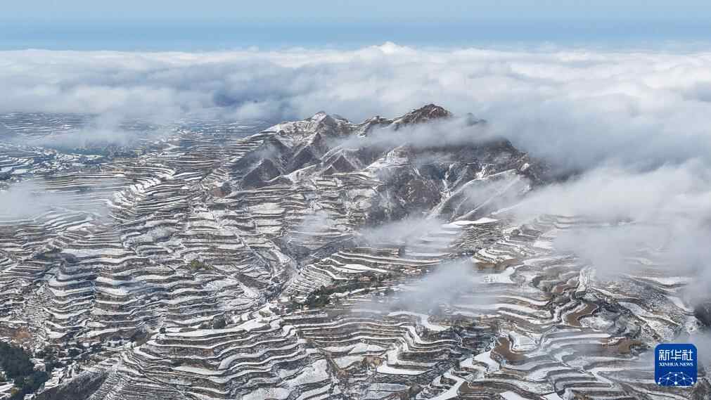 这是10月17日在甘肃永靖县陈井镇拍摄的雪后梯田(无人机照片)。