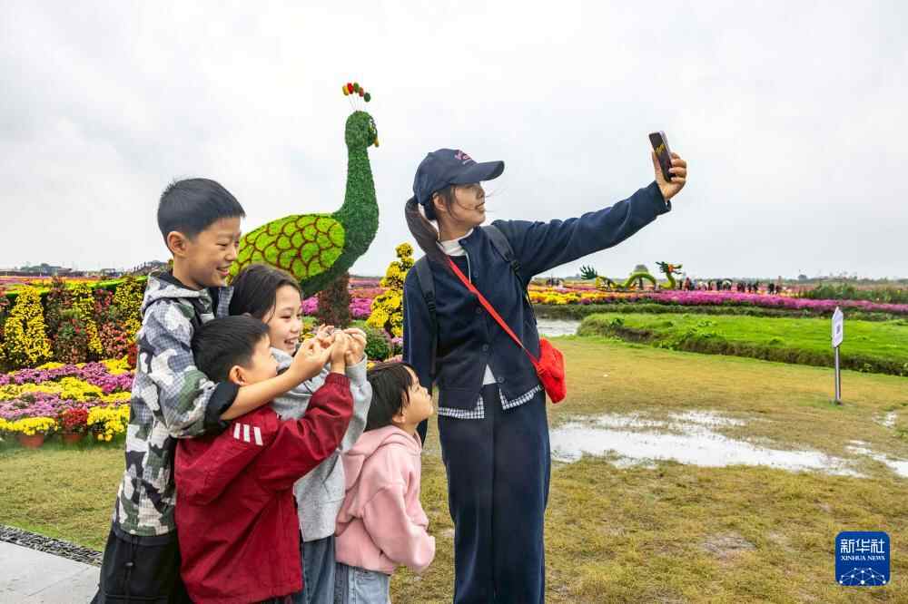 10月18日,游客在云南省昆明大观公园内拍照打卡。