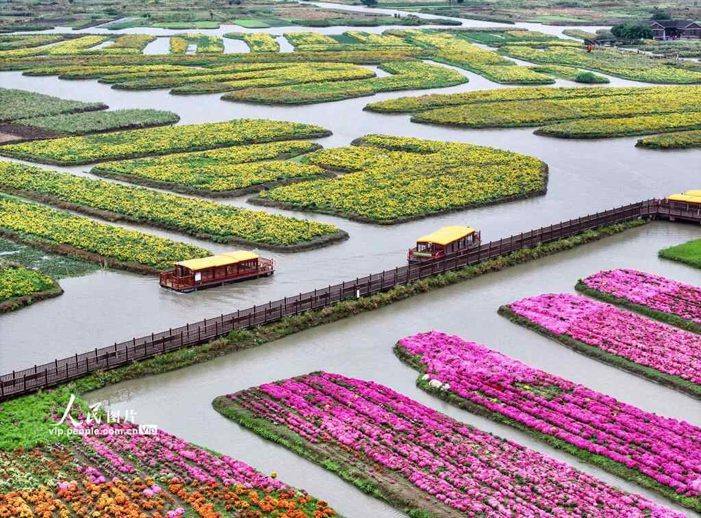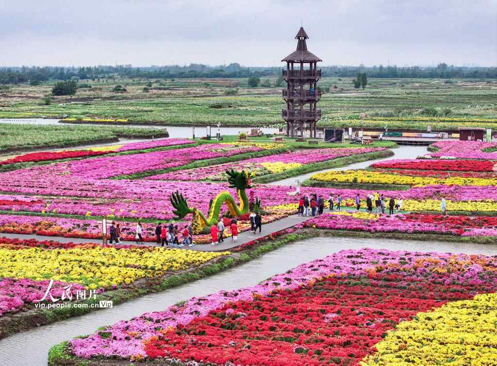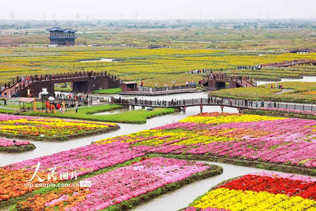 2025年10月18日,江苏省兴化市千垛景区菊花盛放,五彩画卷般的景致吸引游客前来打卡赏花。顾继红摄(人民图片网)