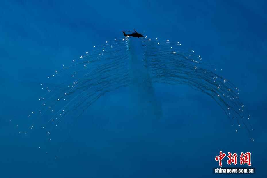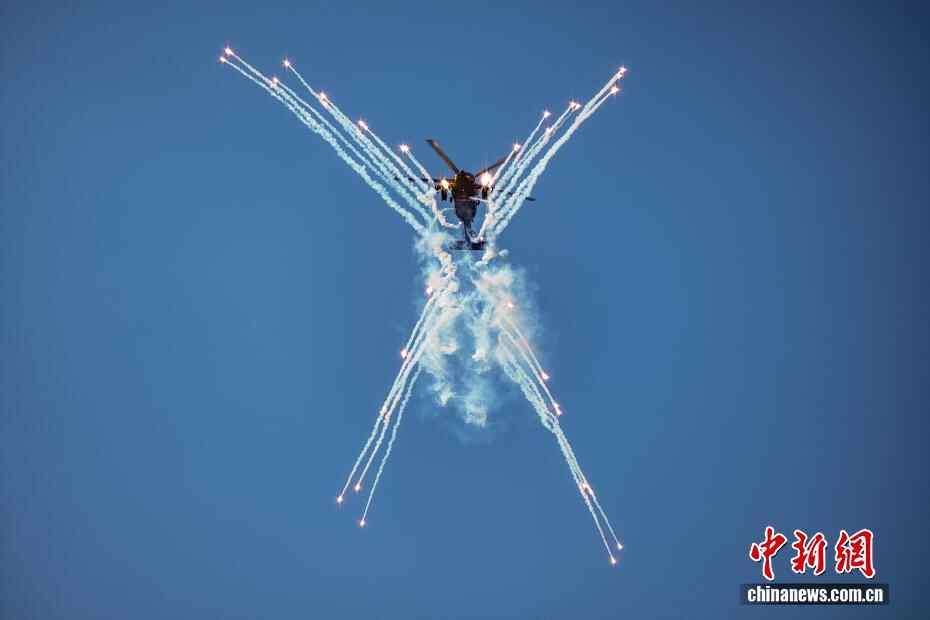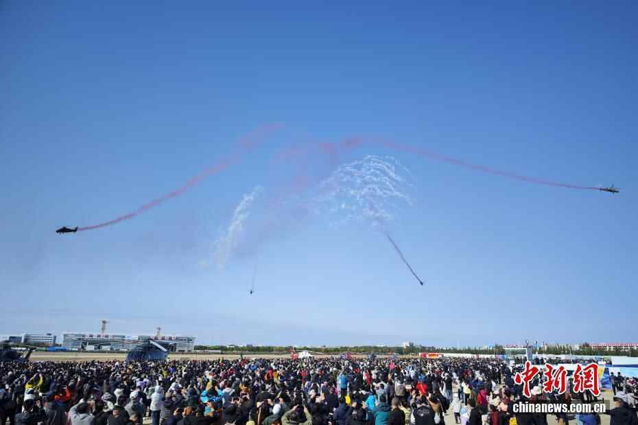 10月18日,天津,中国陆军“风雷”飞行表演队为观众带来特技飞行表演。当日,第七届中国天津国际直升机博览会迎来公众日。